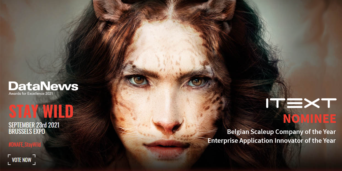 iText has been nominated as "Belgian Scaleup Company of the Year" and "Enterprise Application Innovator of the Year", in the Data News Awards for Excellence 2021. Data News is a leading ICT publication and platform in Belgium.