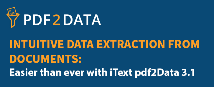 We are excited to announce the release of iText pdf2Data 3.1, the latest version of our template-based data extraction solution. iText pdf2Data intelligently recognizes data inside structured and semi-structured PDF documents and extracts them in a structured format.