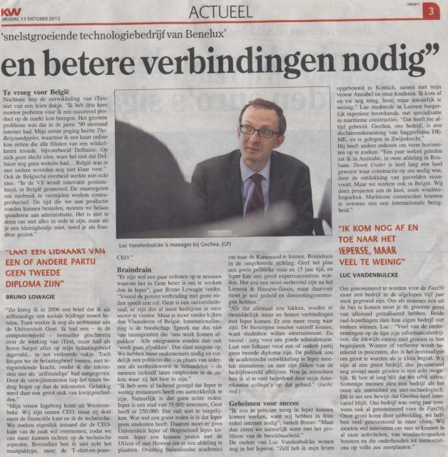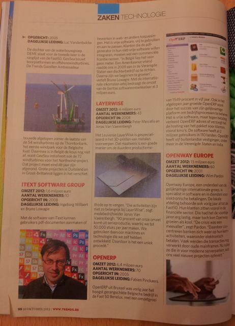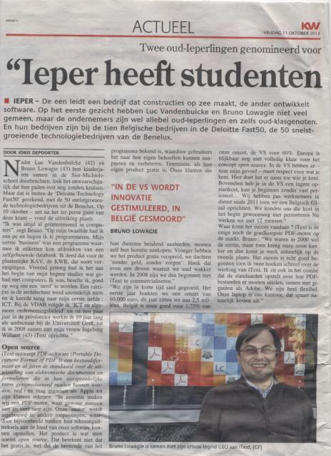 If we look at the Belgian companies in the "digital world", we're #1, says DigiMedia in the article De 5 Belgische digitale start-ups met de snelste groei (which may give the wrong impression that we're still a start-up, which isn't entirely correct). Last week, we already attached a PDF with the contents of an article in De Krant van West-Vlaanderen, now somebody has sent me the paper version: