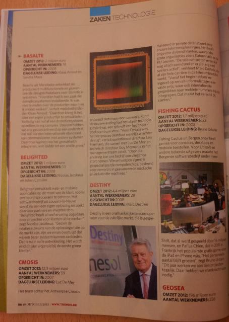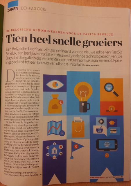 Trends, a Belgian magazine for entrepreneurs, has listed the Belgian Top 10 in Deloitte's Fast 50 contest. The 10 companies were presented in last week's paper edition of the magazine: