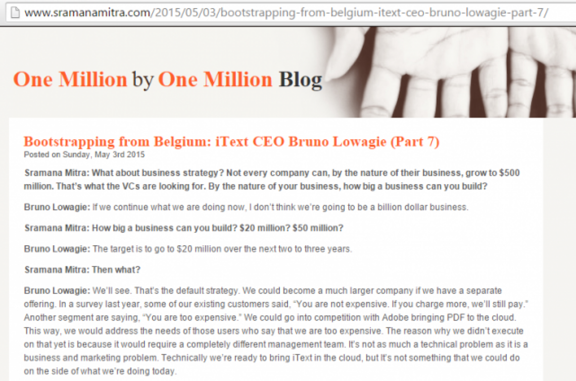 A couple of weeks ago, our CEO was in Menlo Park for an interview with Sramana Mitra, author of the One Million by One Million blog.