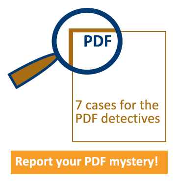 Our CEO is preparing a talk for the educational day at the PDF Days, entitled “7 cases for the PDF support detectives.” The idea is to select 7 mysterious PDF problems he encountered in the last 15 years.